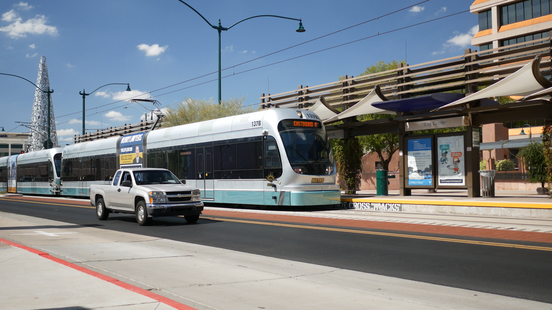 The Valley Metro Light Rail station is just across the street from the Mesa Art Center, making it very convenient. There is also plenty of parking near the center.