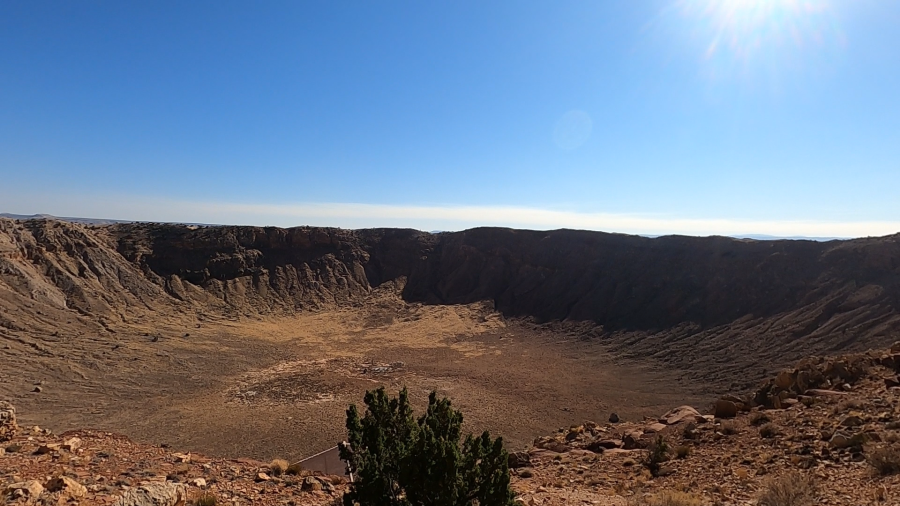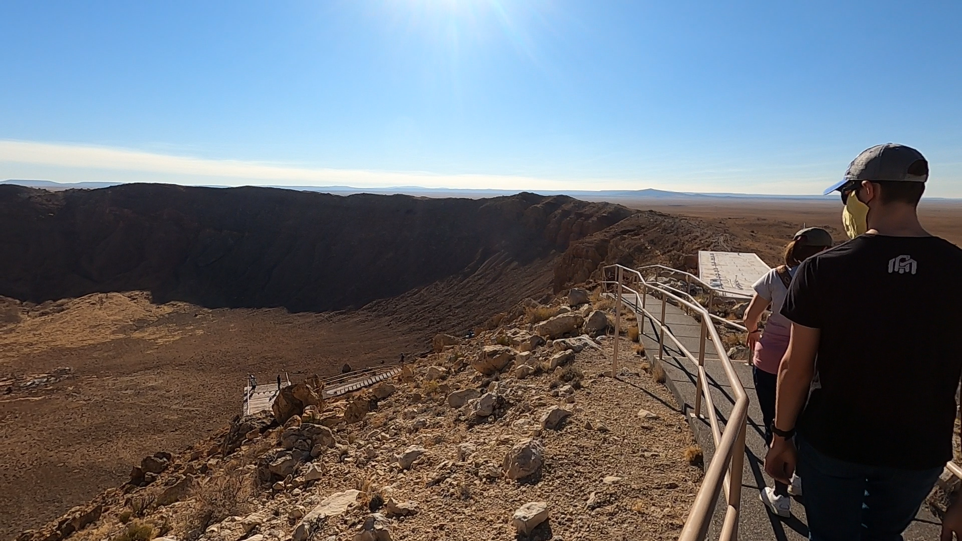 The impact site is almost a mile across and 3 miles in circumference and it is 550 feet deep. The meteor was calculated to be about 150 feet in diameter and weighing 150,000 pounds of iron-nickel. It is amazing that such a small rock can create such a large hole in the ground. Standing on the rim of the crater and seeing this hole is worth the price.