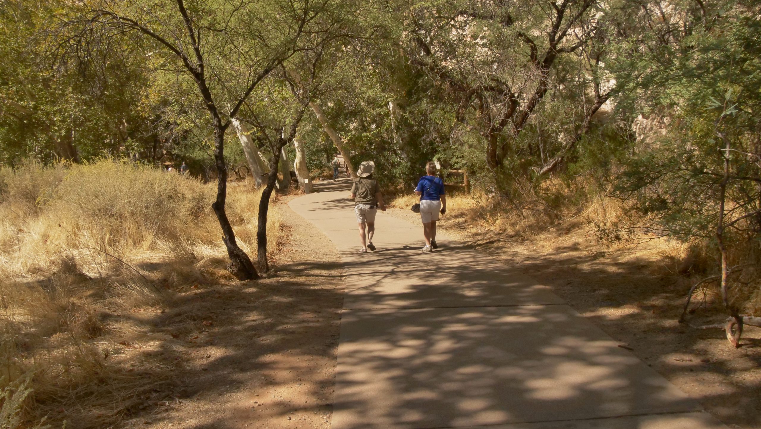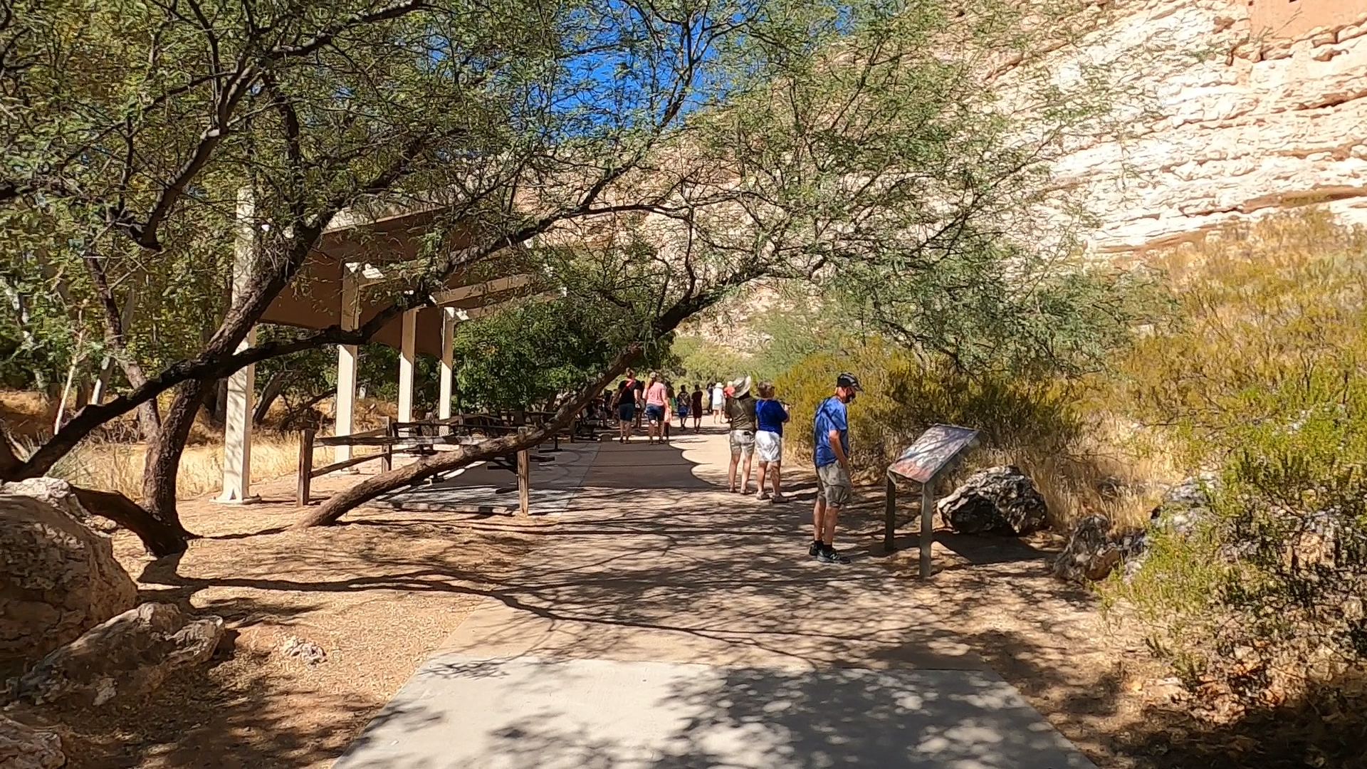 You can wander the short and wide paved trail that is shaded by the tall sycamore groves that leads past the ruins and then loops back towards the visitor center. There are interactive displays explaining the history and go into detail about the ruin. The trail has benches you can rest at and the trees provide plenty of shade on a hot day.
