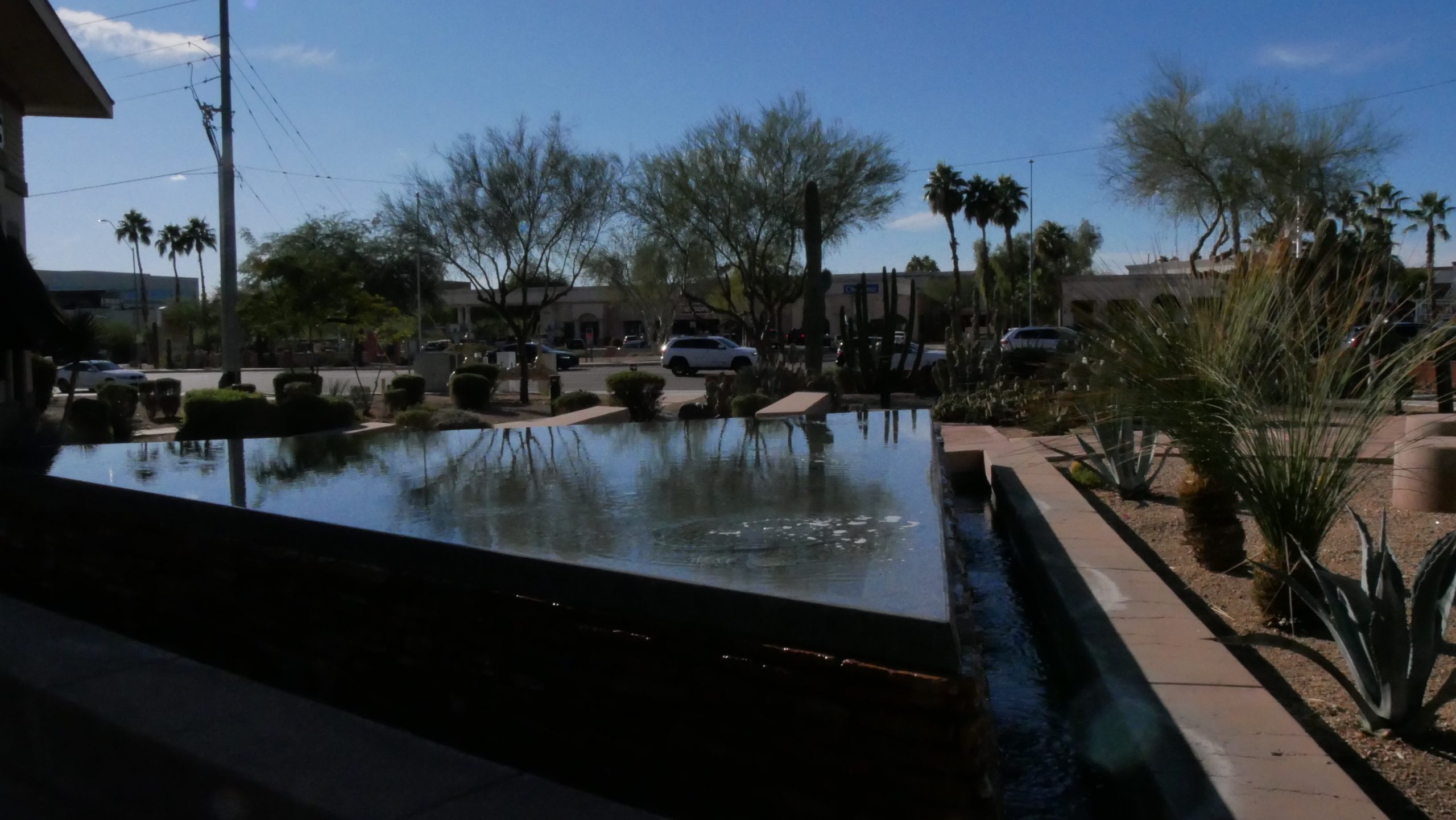 The Spire is at the southeastern corner of Scottsdale Rd and Frank Lloyd Wright Blvd in the Scottsdale Promenade shopping mall.