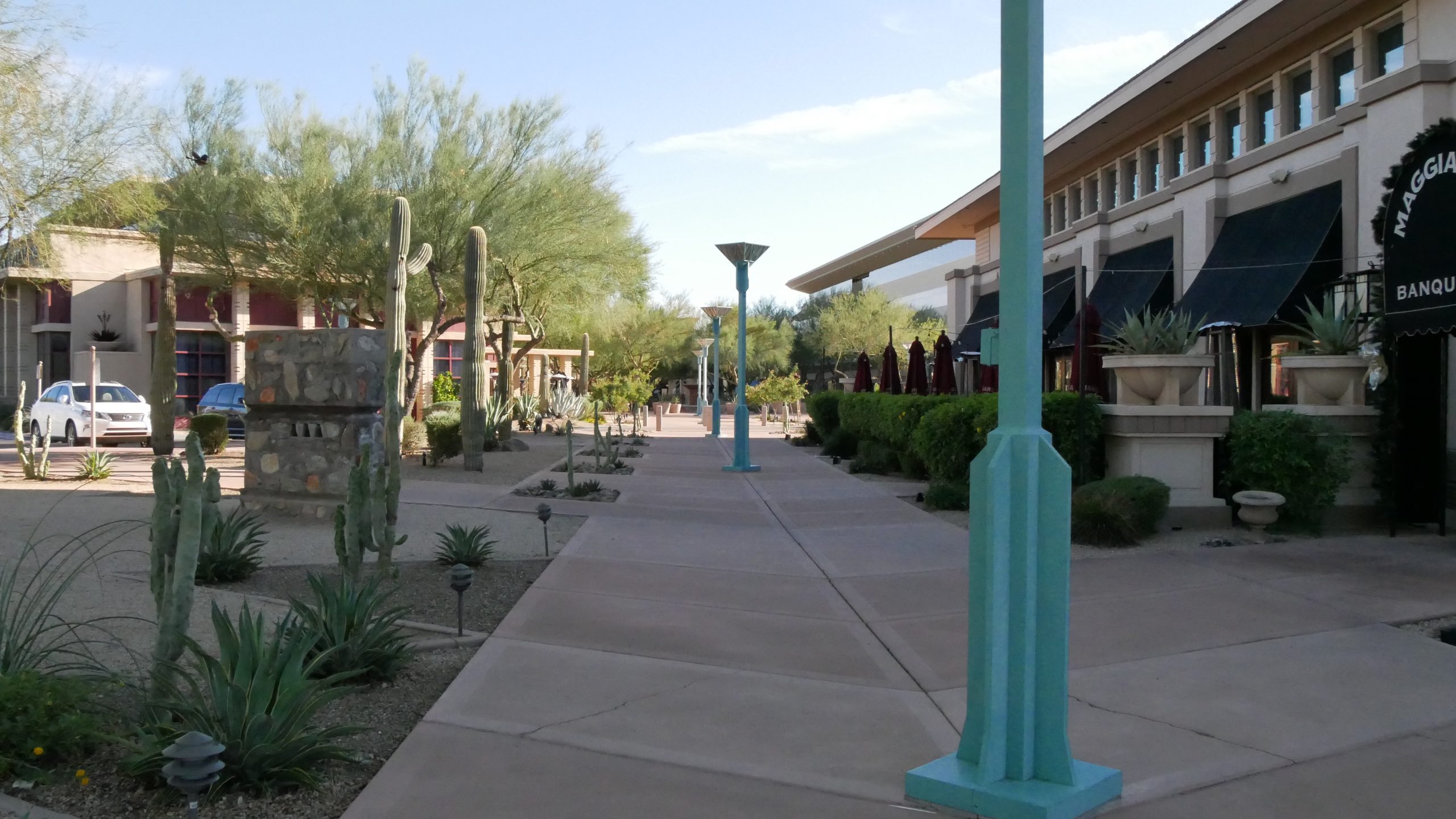 As you drive by the corner of Scottsdale Road the Frank Lloyd Wright Blvd you can’t help notice the tall blue tower at the corner. You may ask yourself “what is that crazy thing?” This is the “Wright Spire” originally designed for the Arizona State Capital building in 1957. It was rejected back then, but in 2004 the 125-foot-tall spire was built.